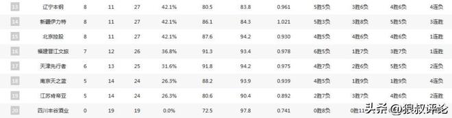 吉林,辽宁,新疆,北控处于相同的战绩,均是8胜11负,想要稳妥拿到季后赛名额,这些球队可能需要经历一些惨烈的竞争。