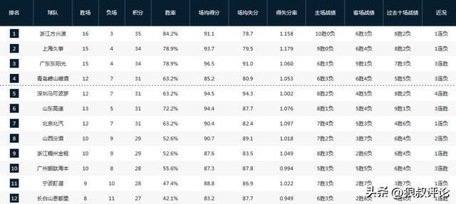 中游球队的排名同样具有看点,山西2连败后,跌至积分榜第八,而与第11的宁波相比,只相差3个胜负差,这就意味着每一轮的赛果,这些中游球队排名都可能发生变化。