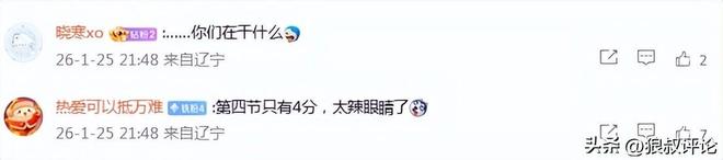 赛后,辽宁单节得到4分引发外界的热议。