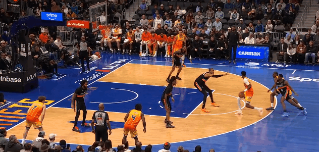 前几天马刺对火箭,落后是陷入乱战,反超是靠正本清源:针对火箭无卫,阿门没篮,夹心饼干防守,逼火箭诸位去文班面前挨打。