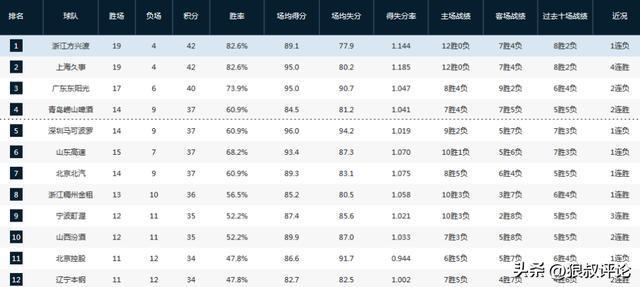 从挑选的外援到本土球员综合实力,广厦,广东,上海位居前三是符合外界的预期,但北京跌至第七出乎意料,辽宁更是从上个赛季的争冠热门,跌到季后赛附加赛的守门员名额,山西,新疆都由于各种问题排名靠后,宁波成为第一阶段最大的黑马,四川由于欠薪风波达到了0胜23负的惨淡战绩。