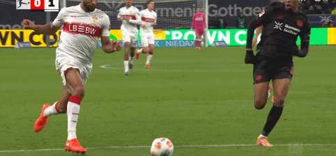 昨天多特客场压哨绝平法兰克福,大概率要被拜仁拉大到2位数的分差,今天勒沃库森倒是有机会缩小和多特的差距,没想到他们却在自家的拜耳竞技场被揍了一顿。开场后斯图加特反客为主展开高效进攻,仅仅6分钟,斯图加特中后场快速反击,连续的精妙配合,昂达夫中圈左侧接球往前推进后送出手术刀式直塞,勒威林插上突入禁区获得单刀良机,面对出击的门将弗莱肯,勒威林撩射得手,斯图加特1:0取得梦幻开局。