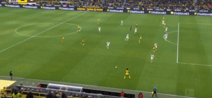 第45+1分钟,阿德耶米突破传中,布兰特破门,多特1-0圣保利