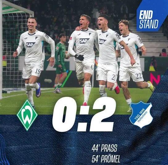 德甲 云达不莱梅 0-2 霍芬海姆