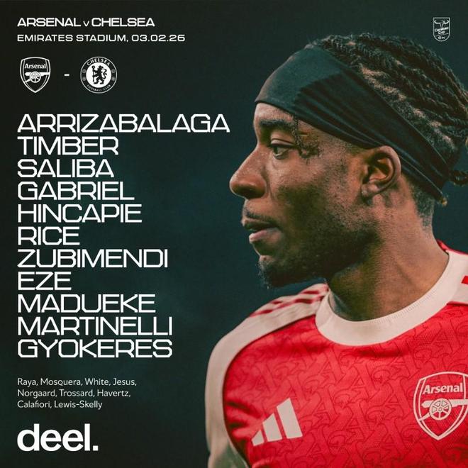 阿森纳vs切尔西:哲凯赖什PK德拉普,马杜埃凯、哈托出战