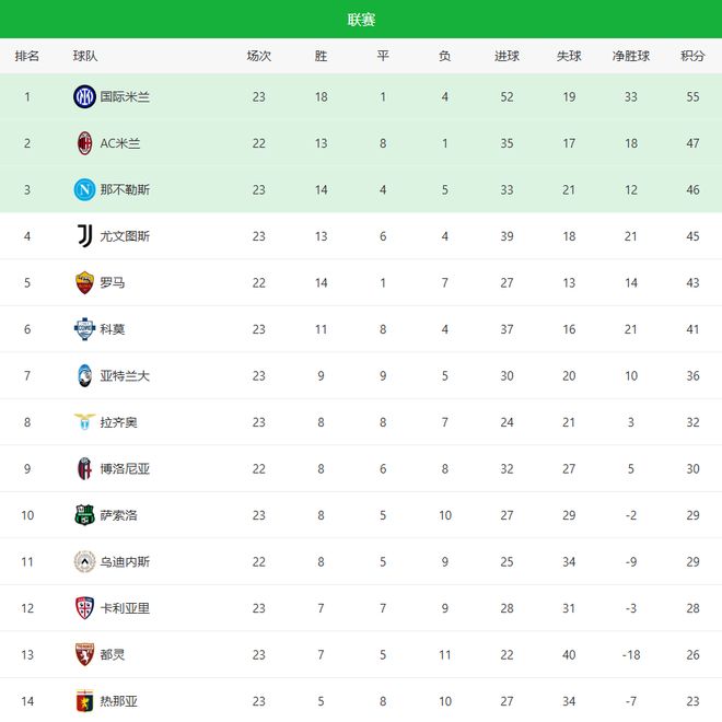 国米2-0,劳塔罗破纪录+尤文4-1大胜!意甲最新积分榜 2-6名差6分