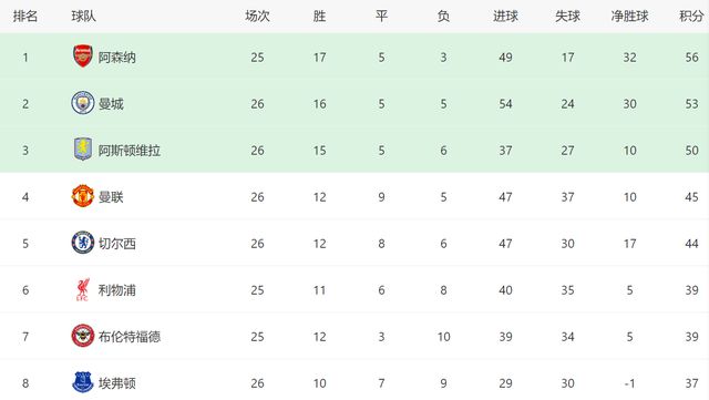 大家都知道,阿森纳一直有下半程掉链子的传统,如今球队不仅面临诸多伤病,曼城又苦苦紧逼,接下来阿森纳要头大了,因为他们几乎不能犯错,否则的话,他们的榜首宝座,就开始不稳了。值得一提的是,本轮维拉也在主场1-0击败了布莱顿,他们如今和阿森纳也只差6分,虽然维拉争冠希望不大,但是如果阿森纳后面真的掉链子,维拉未必就没有机会。至少从目前来看,阿森纳虽然还是夺冠第一热门,但是阿尔特塔肯定不敢大意,在还没有确保冠军到手之前,阿森纳不能有任何松懈,否则结果就难说了!