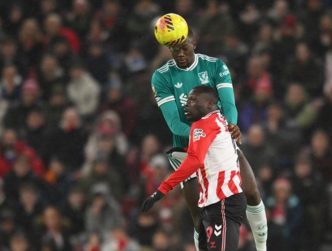 下半场易边再战。第51分钟,埃基蒂克故意拉倒门将,但裁判并没有给牌。8分钟后,穆杰莱在右侧内切低射近角,踢偏了。紧接着,萨拉赫在禁区中路接到横传球,直接抽射,被挡了出去。第61分钟,利物浦终于进球了!萨拉赫开出角球,范戴克高高跃起,头球顶进。桑德兰轰然倒下!