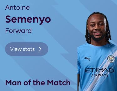 传射建功,塞门约当选曼城vs富勒姆全场最佳球员