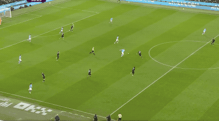 曼城的反击接踵而至,哈兰德的传球相当关键,塞梅尼奥向中路盘带,却突然斜传,奥莱利轻巧搓射,曼城两球领先。