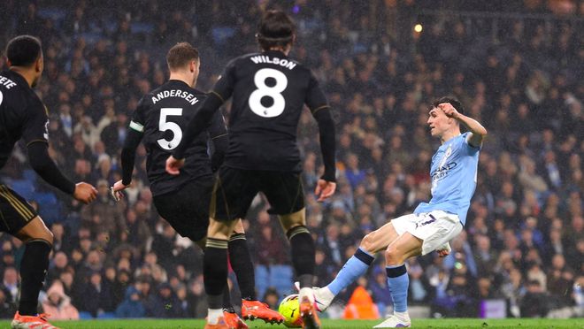 两分钟后,曼城卷土重来,努内斯的下底传中被挡出,福登停球有些大,顺势扣过防守球员,右脚劲射被莱诺没收。