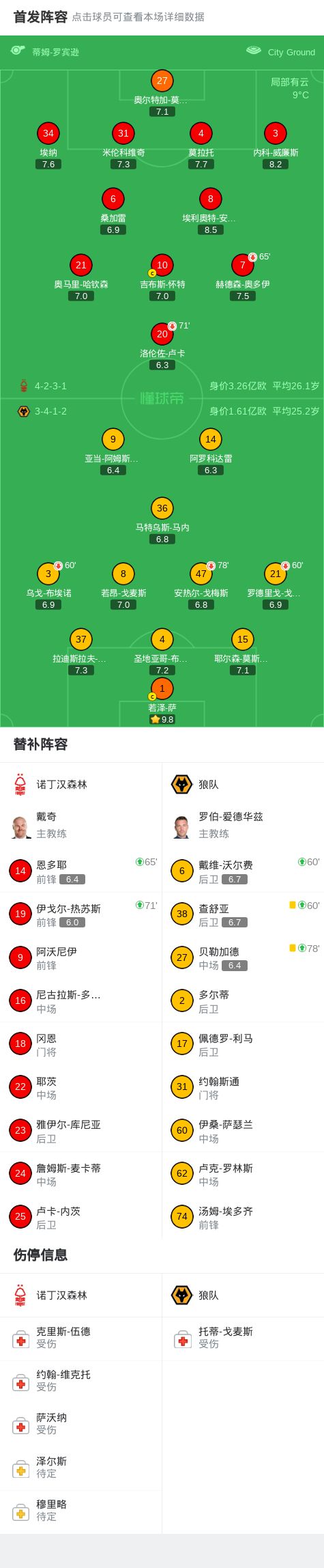 北京时间2月12日英格兰足球顶级联赛 联赛 第26轮,诺丁汉森林主场对阵狼队。最终比分诺丁汉森林 0-0 狼队。