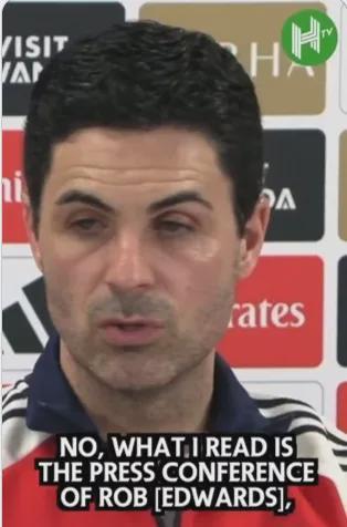 阿森纳主帅表示:“我没看到这个视频,我只看到了他们的主帅在新闻发布会上的发言以及发给我的短信。爱德华兹认为阿森纳是目前为止英超最好的球队,所以我对这个更感兴趣,而不是其他人发了什么我不了解的事情。特别是我看都没看过。”