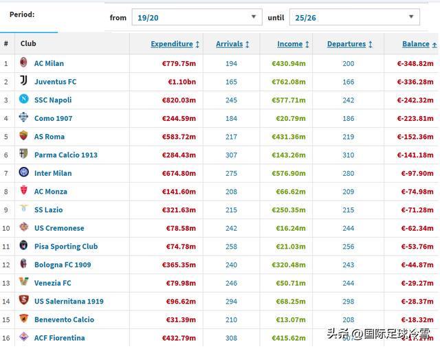 从2019-20赛季开始,马洛塔开始主导国米建队。他任期内,国米转会净投资是9790万欧元,不要说不到AC米兰(3.49亿)、尤文图斯(3.36亿)、那不勒斯(2.42亿)等队的一半甚至1/3,就算比起科莫(2.24亿)、罗马(1.52亿)、帕尔马(1.41亿)都要低。