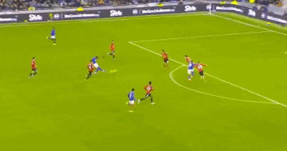 随后曼联的进攻一波接一波。达洛特凌空抽射擦柱而出,姆伯莫低射偏出立柱,B费弧顶爆射高出横梁。半场下来,曼联控场优势明显,却始终差一脚终结。埃弗顿则在防守反击中寻找机会,但节奏始终被压制。基恩、布兰斯韦特拼命封堵,皮克福德多次出击稳定后防。