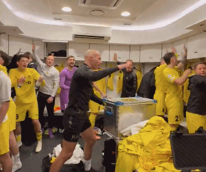 在梅阿查球场的更衣室,博德闪耀全队疯狂庆祝胜利。或许,连他们自己都不敢相信,当初排名欧冠联赛阶段24名开外,如今却庆祝晋级16强。